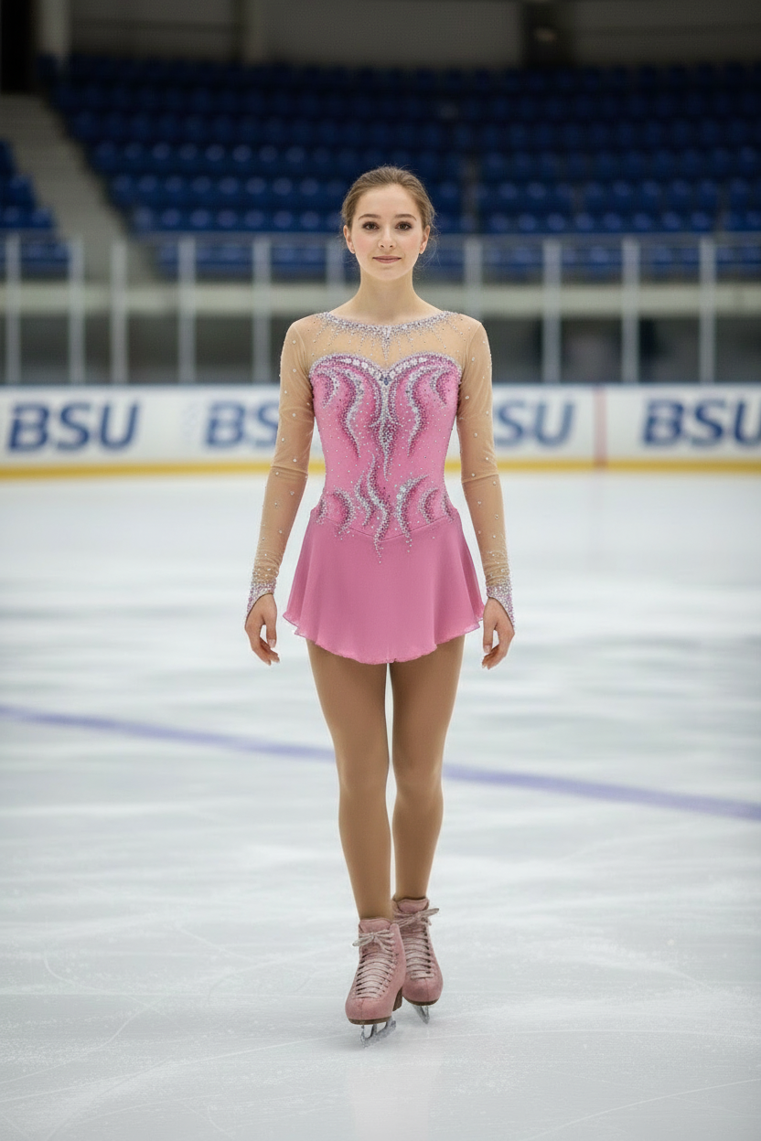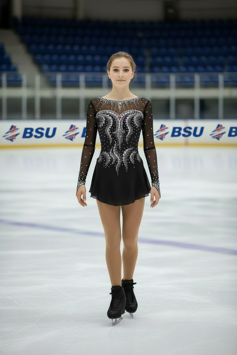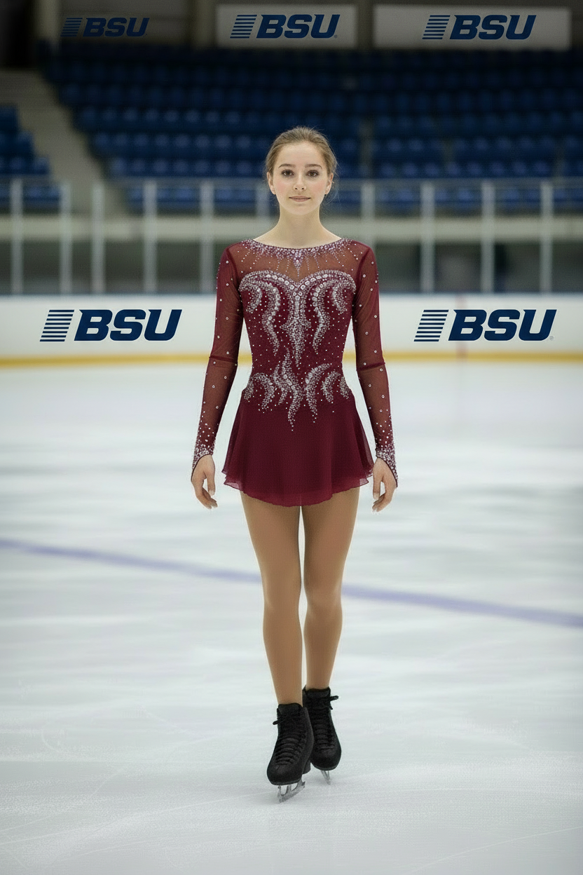 Designed for competitive skating, this dress offers a dynamic red to black or blue ombre gradient that captures attention on the ice. Its precise cut ensures optimal freedom of movement, allowing for fluid performance without compromise. Combining striking visual appeal with functional design, this dress supports advanced routines while projecting confidence and style.