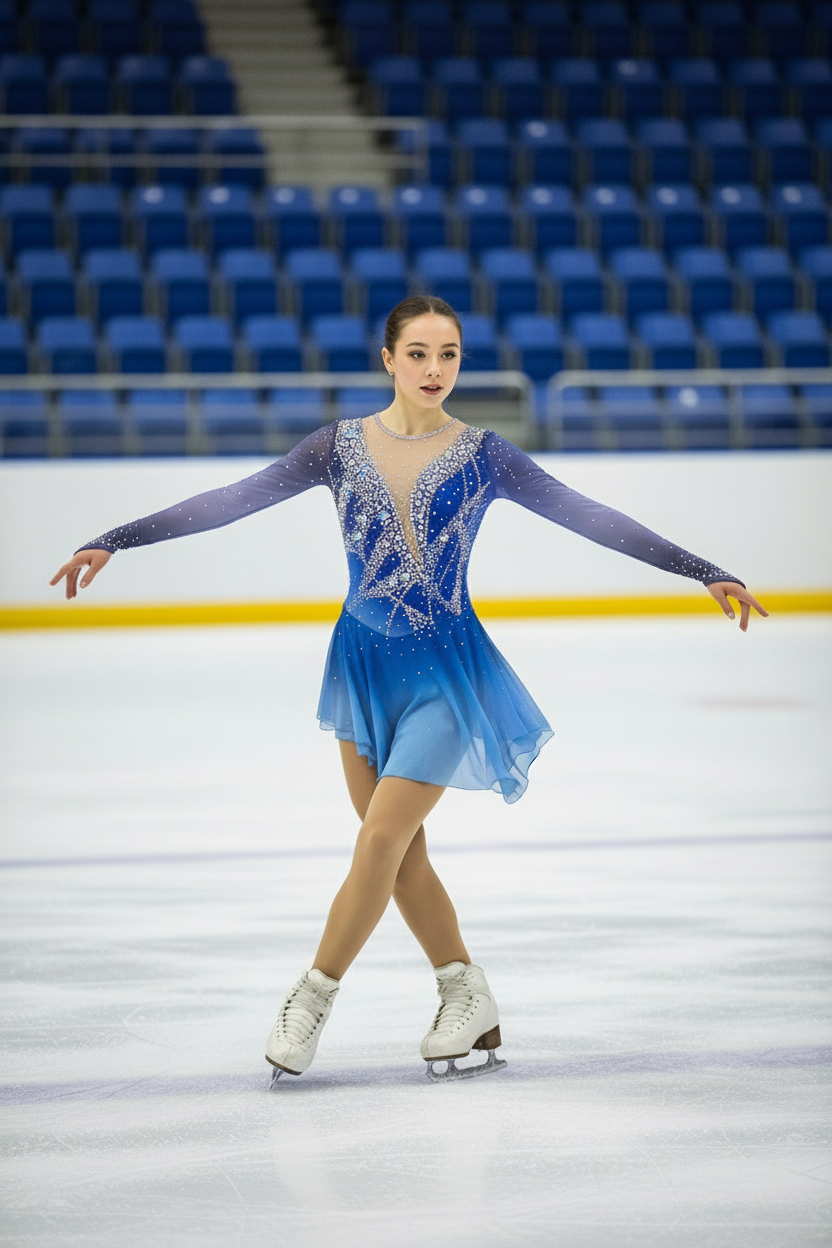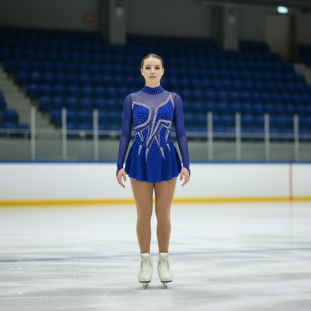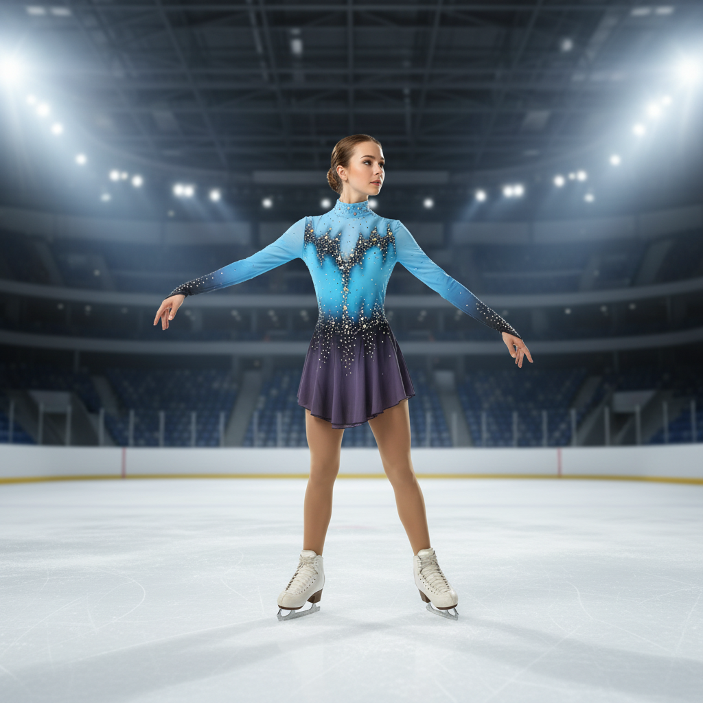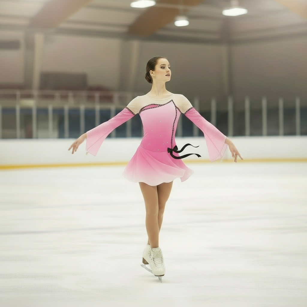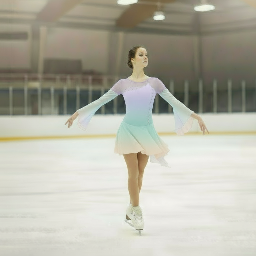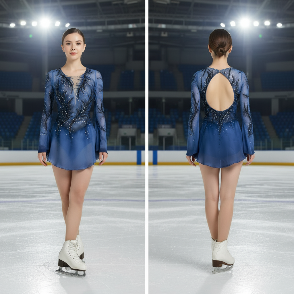 Designed for competitive skating, this dress offers a dynamic red to black or blue ombre gradient that captures attention on the ice. Its precise cut ensures optimal freedom of movement, allowing for fluid performance without compromise. Combining striking visual appeal with functional design, this dress supports advanced routines while projecting confidence and style.