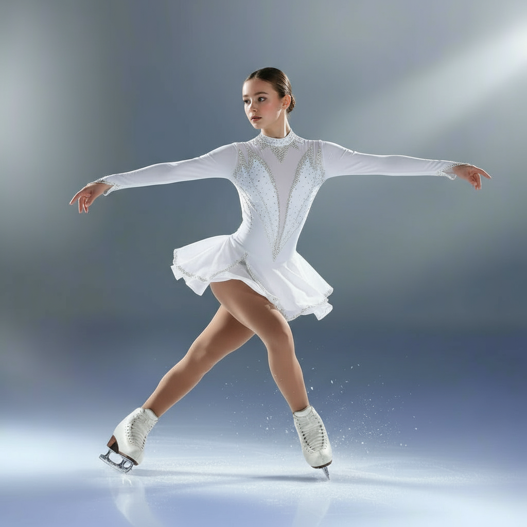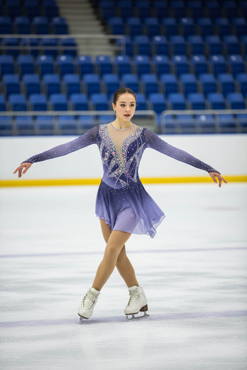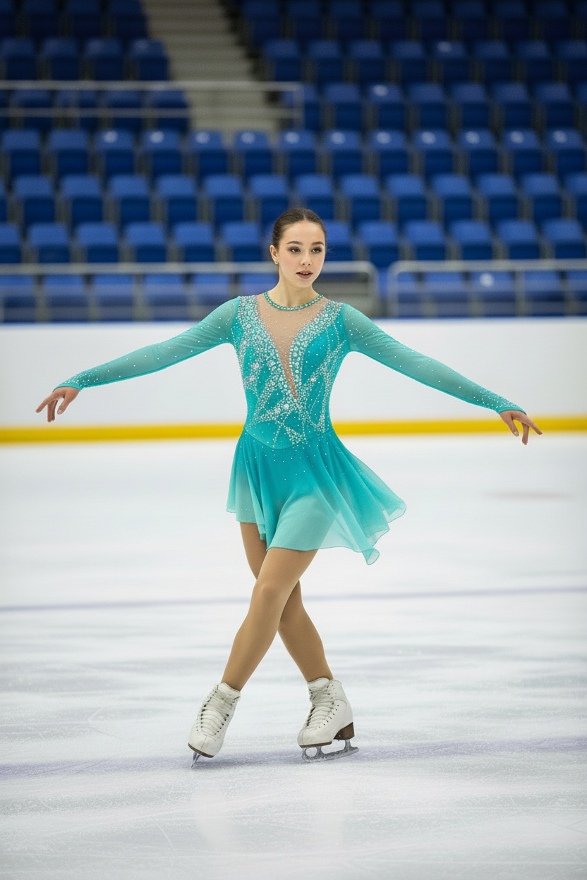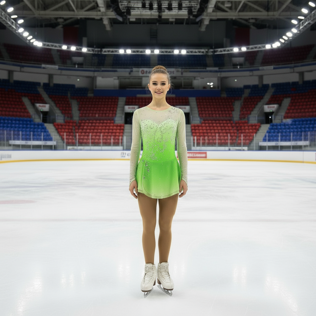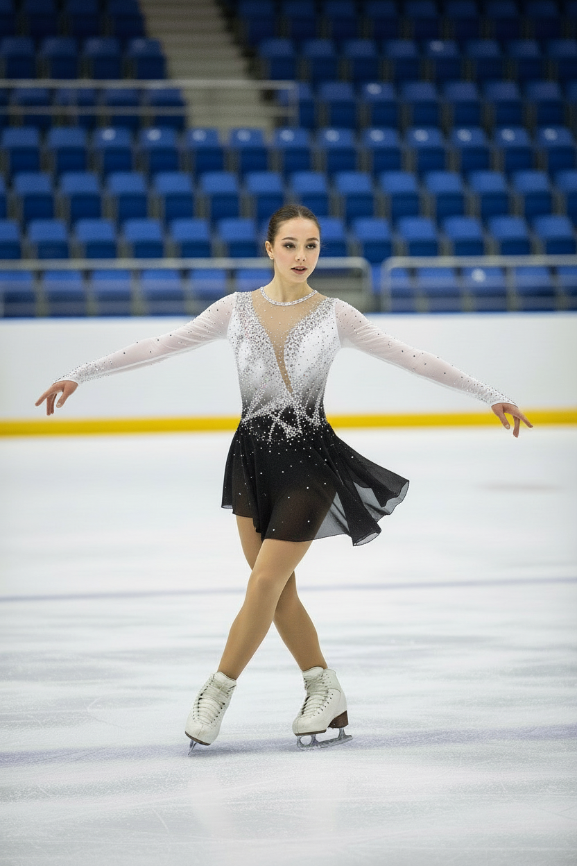 Designed for competitive skating, this dress offers a dynamic red to black or blue ombre gradient that captures attention on the ice. Its precise cut ensures optimal freedom of movement, allowing for fluid performance without compromise. Combining striking visual appeal with functional design, this dress supports advanced routines while projecting confidence and style.