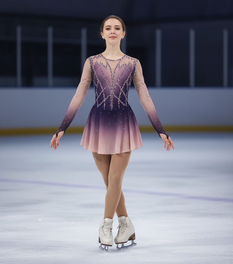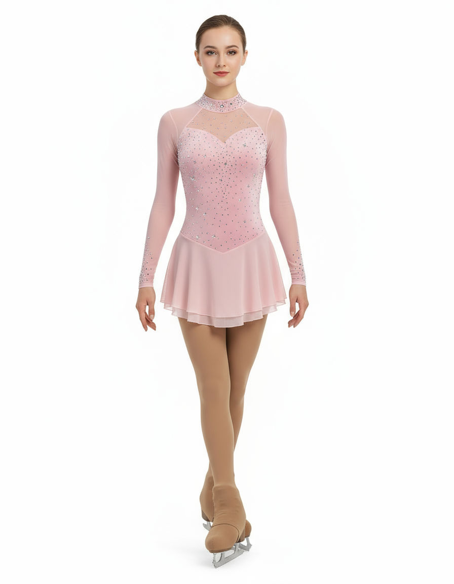This Competition Figure Skating Dress BSU141025 combines elegance and performance with its sophisticated grey and pink color palette. Crafted from torade twisted fabric, it offers both flexibility and a sleek, textured look that moves seamlessly with the skater. Designed for competition, the dress ensures comfort and durability, allowing for unrestricted motion while highlighting refined style on the ice. Ideal for athletes seeking a balance of functionality and striking visual appeal.