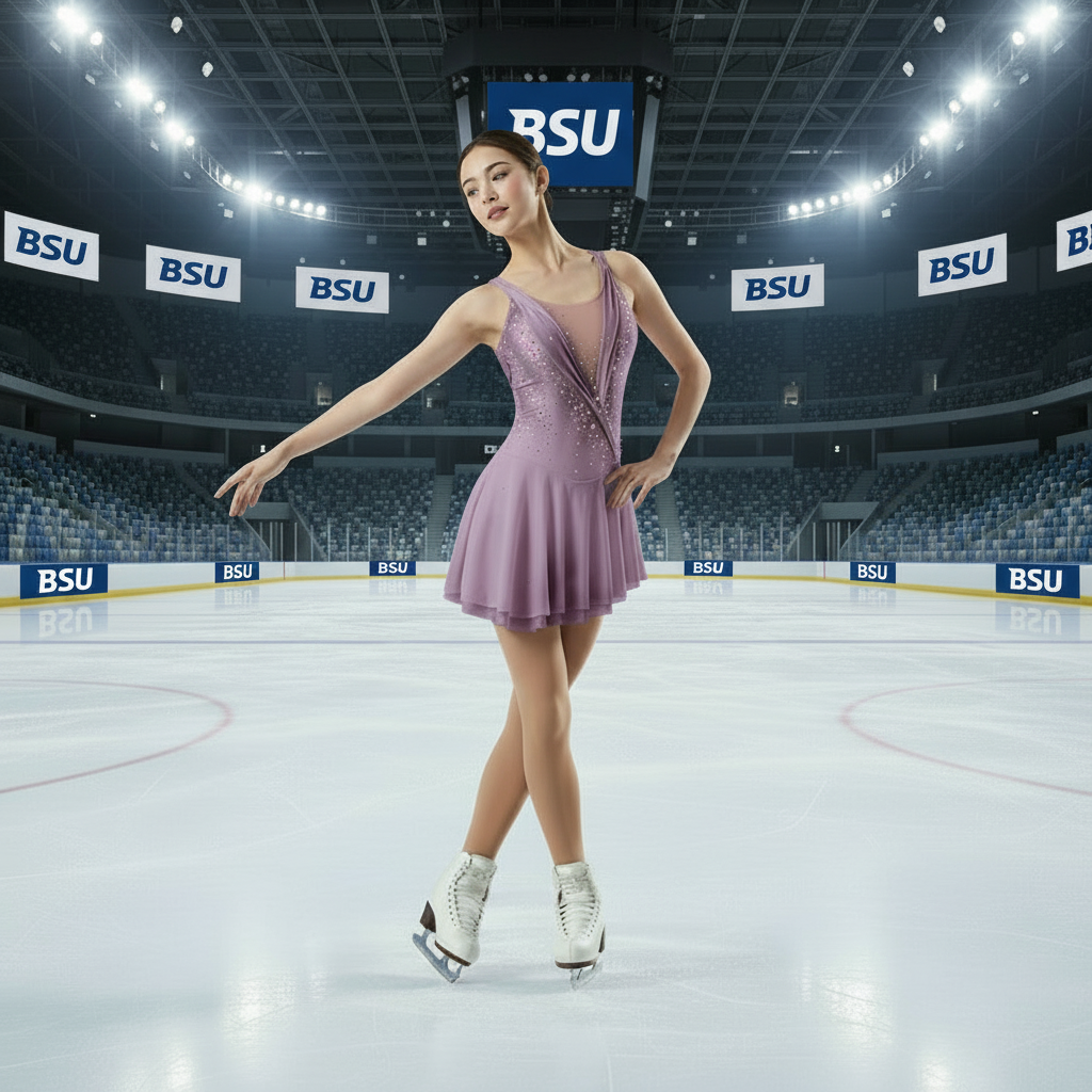 This Gorgeous BSU Skating Dress is Made of Blue Ombre Lycra with Mesh Sleeves Sweet Heart Neckline, and V Back and Long Mesh Sleeves, finished with Preciosa Crystals. Come with Built in Pantie and Double Layer Skirt .