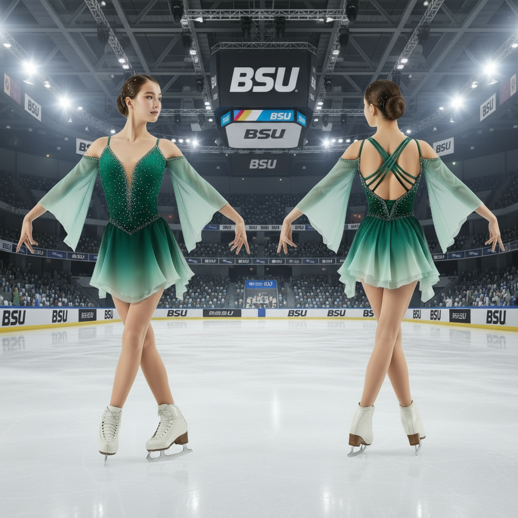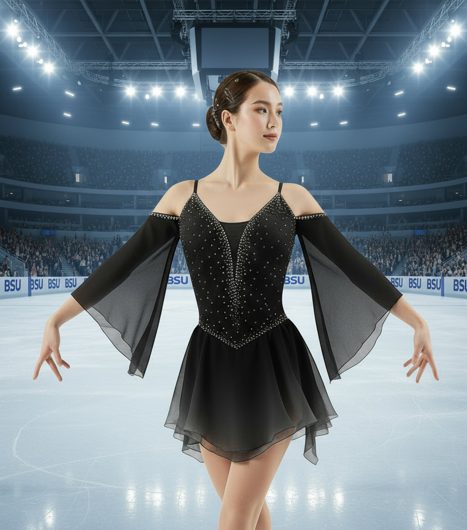 Designed for competitive skating, this dress offers a dynamic red to black or blue ombre gradient that captures attention on the ice. Its precise cut ensures optimal freedom of movement, allowing for fluid performance without compromise. Combining striking visual appeal with functional design, this dress supports advanced routines while projecting confidence and style.
